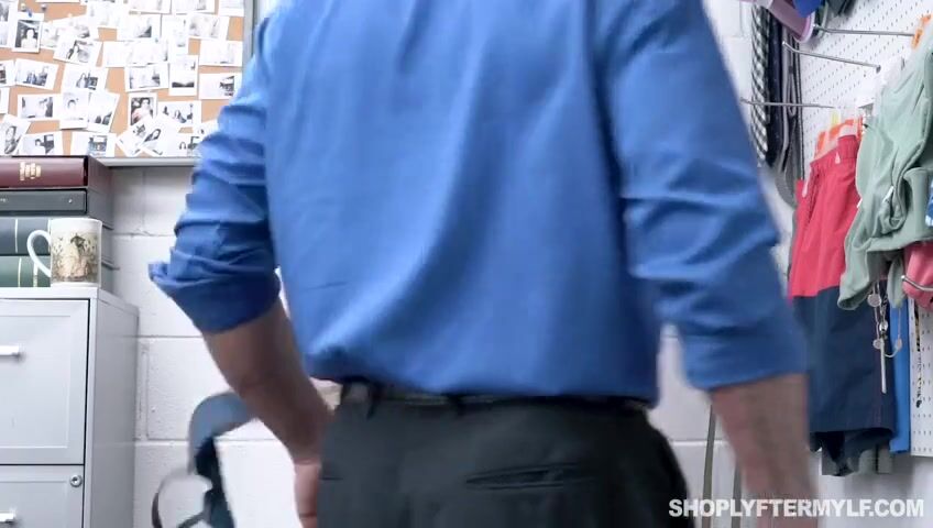 Рыжая мамка ходит по супермаркетам, крадет различные мелкие вещи, а потом прячет ворованное в киске.