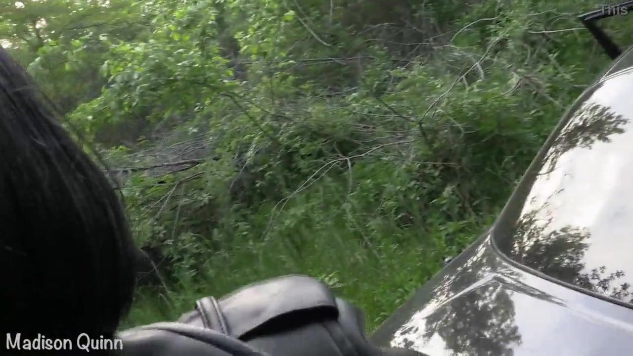 Парень отвез эту молодую русскую брюнетку в лес, чтобы там устроить прогулку в лесу и заодно устроить русский секс на капоте своего автомабиля.