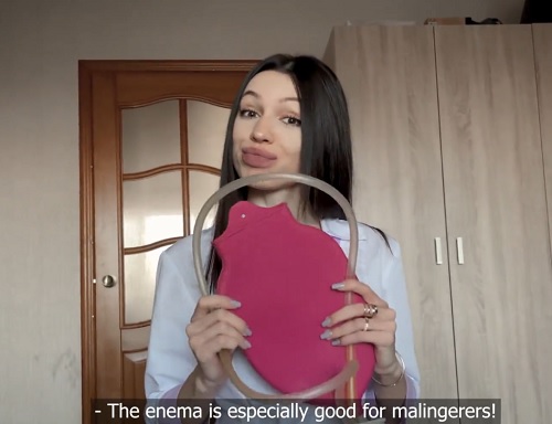 Парню стало немного плохо и он решил вызвать медсестру к себе домой. И вместо классической медсестры, приехала милфа медсестра с татуированной жопой.