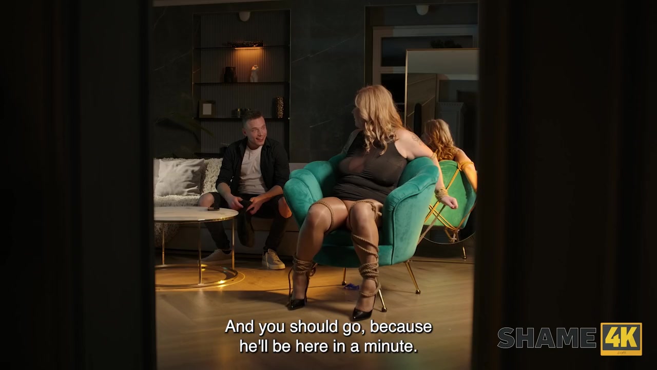 Посмотрев в безумные и возбужденные глаза, полная мачеха поняла, что пасынок не собирается её развязывать, а даже наоборот, хочет трахнуть её связанную.
