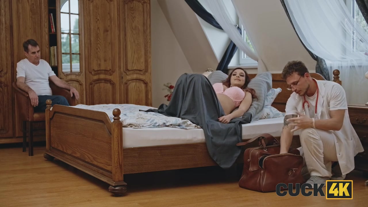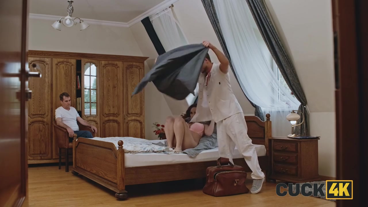 Походу, это король куколдов, ведь он спокойно смотрит, как доктор трахает его беременную жену, причем он не просто смотрит, он подглядывает и дрочит на это.