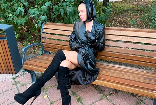 Русская мамка сидит на лавочке в парке и всем показывает, что она без трусиков, ну как всем, только молодым парням, которых хочет соблазнить и трахнуть.
