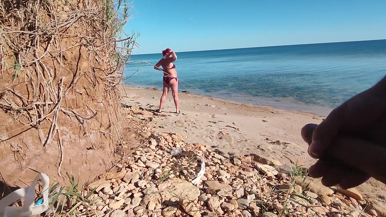 Молодой человек проследил за мамкой своего друга, которая пошла на пляж, чтобы подглядывать за ней и дрочить свой член. Но был пойман этой самой мамкой и наказан минетом.