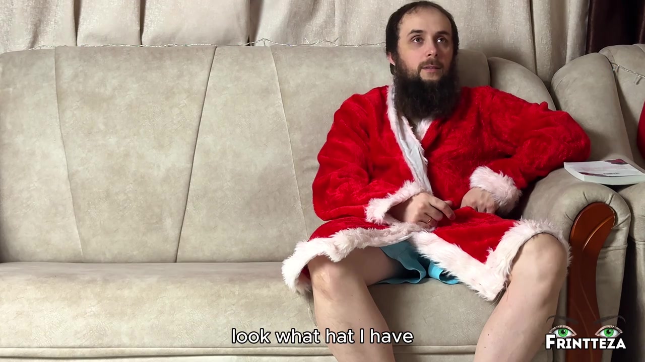 Русская мачеха Наташа совсем расстроилась из-за неправильного размера новогоднего халата а ля санта клаус, и попросила пасынка померить его. А потом прилегла на диванчик рядом и пасынок помассажировал мачеху своим членом в ротик.